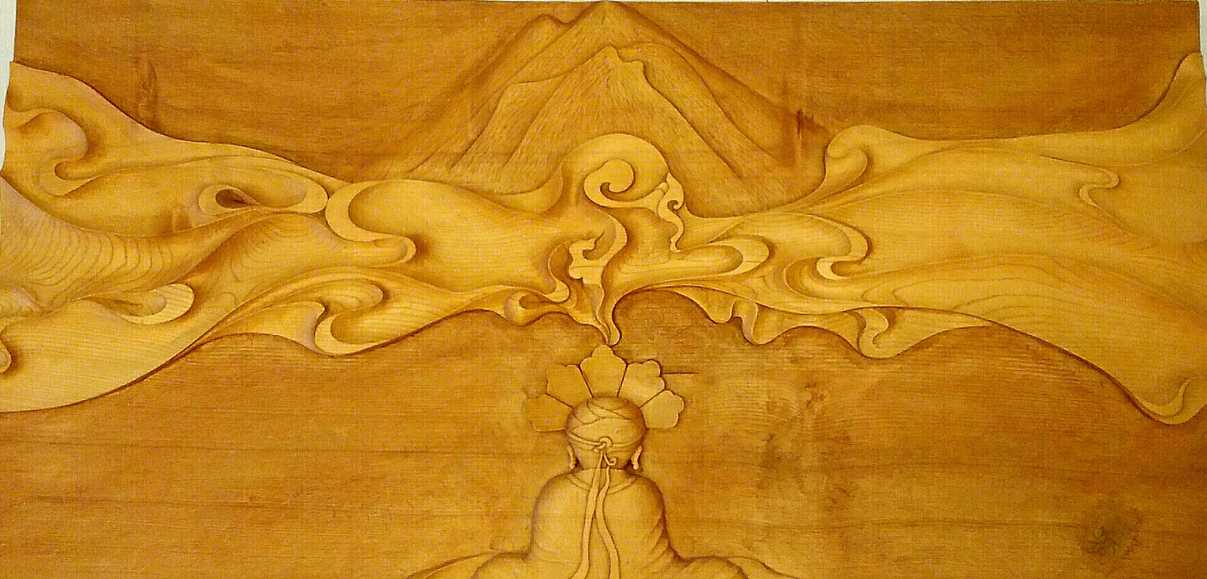 據(jù)古老的東巴經(jīng)《崇搬圖》(創(chuàng)世紀(jì))記載,在宇宙混沌萬物還沒有產(chǎn)生的時(shí)候,上方傳來一個(gè)美妙的聲音,下方冒出一個(gè)白氣,聲音和氣結(jié)合產(chǎn)生了天和地。